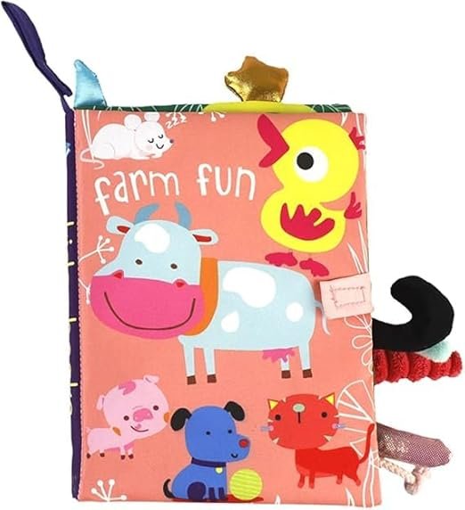 Baby Soft Cloth Book, Farm Animals Theme with 3D Tails, Sensory Educational Toy for Infants and Toddlers, 18.5 x 15 cm